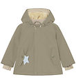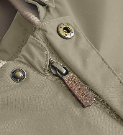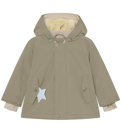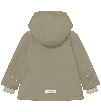 The Mini A Ture winter coat has a hidden elastic cord so it fits snugly around the face, and the hood is removable and fastens with push buttons. On the inside of the winter coat there is an adjustable elastic so that it can be tightened around at the waist. The Jacket is lined with lovely, soft fleece both in the body and in the hood, while there is a smooth-woven lining in the sleeves. At the wrists there are practical snow-cuffs in beige, stretchable polyester with a hole for the thumb.