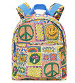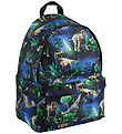 Cool Molo backpack in black, with bold flame print on the front in orange and yellow.