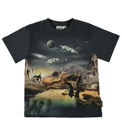 Discover the fantastic T-shirt from Molo with an impressive dinosaur print that will capture children's imagination. This T-shirt has short sleeves and is perfect for play and relaxation. Molo always manages to combine style with fun, and this T-shirt is no exception.