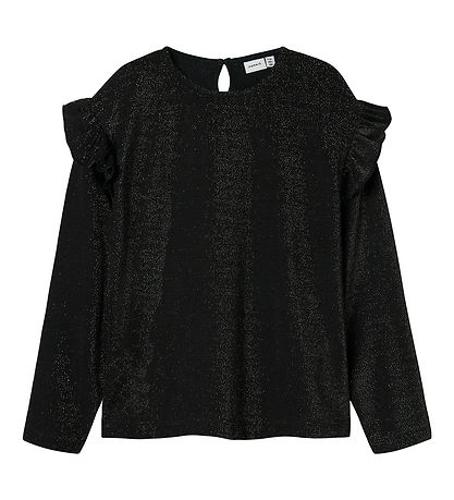 Nice blouse from Name It, which with its unique design and glittering details is perfect for festive occasions. This blouse has long sleeves and decorative ruffles on the shoulders, giving it an elegant touch. The black colour makes it easy to style with different outfits, and with this modern print you stand out. Name It delivers both comfort and style in one design, so your child can feel comfortable all day.