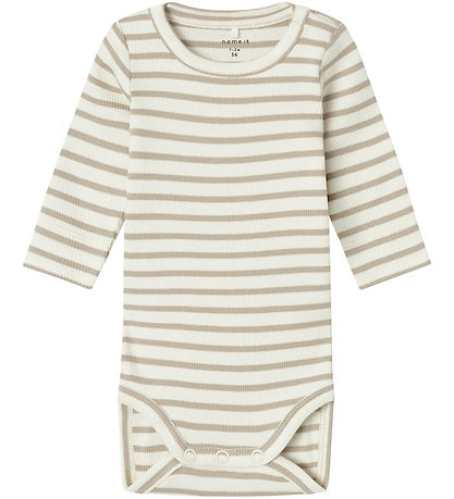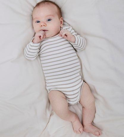 Sweet Name It bodysuit in white with horizontal stripes in beige, and with a beautiful ribbed structure.