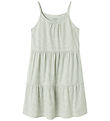 The Name It dress has narrow straps and a slightly gathered structure at the neckline at the front. The skirt has a layered design, which gives a good width and pleats. The Dress has a soft structure that makes it comfortable to Have.