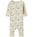 The Name It jumpsuit has a round neckline with push buttons at the left shoulder. The Jumpsuit has long sleeves and long legs with push buttons between the legs, which allows the jumpsuit to be opened completely.