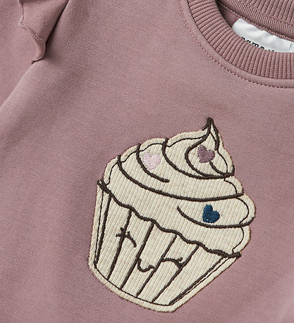 Charming Name It sweatshirt in a dusty purple colour with an appliqued CupCake. The Name It sweatshirt has long sleeves and a round throat. On the shoulders there are fine ruffle details, which add an extra touch. On the inside there is soft, brushed cotton.