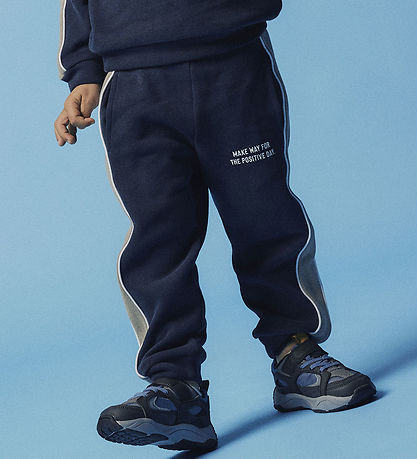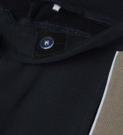 Practical Name It trousers in a blue shade with contrasting details in a beige shade and white. The Trousers have an internal adjustable elastic edge. The trousers have open pockets on the sides and a square pocket on the back on the right side. The Trousers have a soft brushed inside.