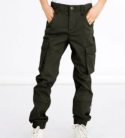 Smart Name It trousers in dark green in an easily stretchable quality.
