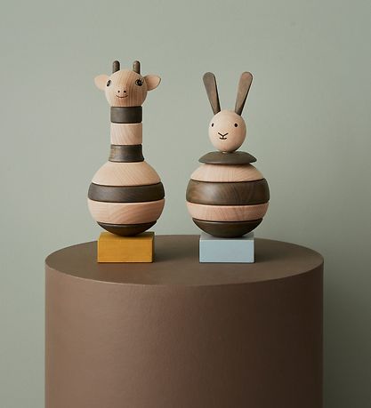 The OYOY tower consists of a total of seven parts, with different shapes. The lower set has a long wooden stick in the middle, which the rabbit can stand on. The stacking tower is fun and educational for the little ones as it strengthens the child's motor skills and logical sense.