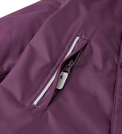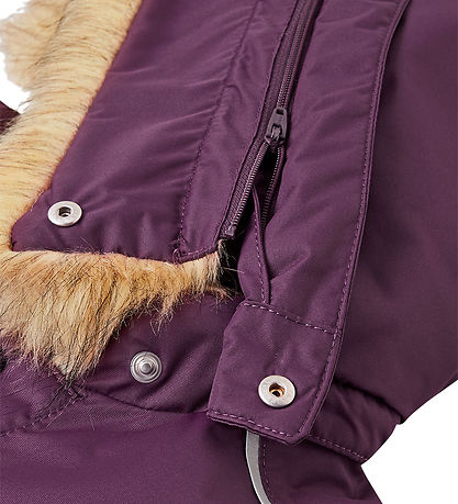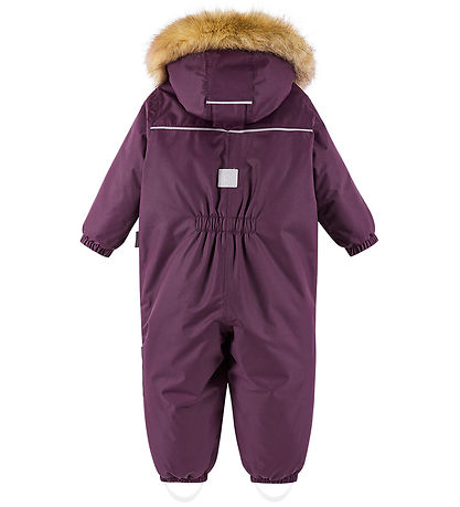 Fine Reima snowsuit in plain, dark purple, and the hood has a nice edge of faux fur.