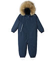 The Reima snowsuit has a removable hood that Fast with hidden push buttons, and the fur trim Fast with a zipper. The hood can be adjusted at the top with a Velcro strap. The sleeves have fleece-lined elasticated edges and the pant legs have elasticated edges and removable, adjustable rubber straps to put under boots.