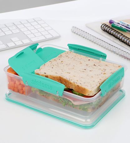 Smart Sistema lunchbox in ready plastic with turquoise details. The Lunchbox has a maximum capacity of 975 mL.