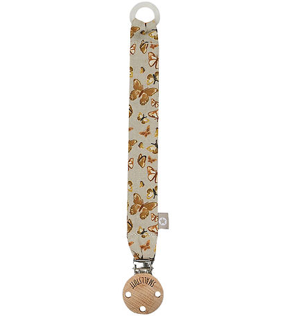 Practical Smallstuff dummy clip in beige with an allover print of butterflies in shades of brown.