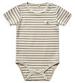 The Sofie Schnoor bodysuit has short sleeves with wavy edges, and the leg openings have narrow ribbed edges. It can be opens at the left shoulder and between the legs, with practical push buttons.