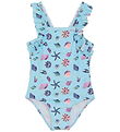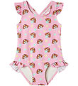 The Stella McCartney Kids swimsuit has wide shoulder straps, and it has a nice wrestling back.