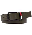 Smart Tommy Hilfiger belt with a strap in black leather and a belt buckle in shiny, silver-coloured metal. The leather ring has the classic Tommy Hilfiger flag in red, white and navy.
