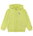 Beautiful Tommy Hilfiger cardigan in yellow knitted with an embroidered pattern on the left side.