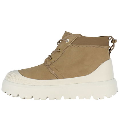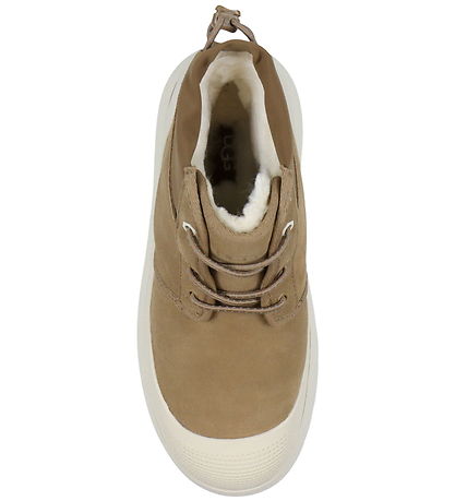 The UGG winter boots have a mid-height shaft with elastic laces at the front, which are tightened with a buckle at the back. The Winter boots are lined with a warm wool blend, and at the bottom there are soft, removable insoles. The Winter boots have strong, but lightweight EVA foam outsoles with a rough tread pattern under the bottom, which ensures good footing.