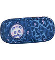Beautiful Beckmann pencil case with leopard print in dark blue shades with pink details, and on the top there is a Velcro label with a panda.