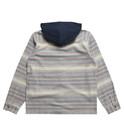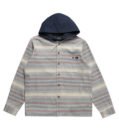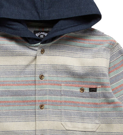 Durable Billabong shirt with long sleeves in a light beige nuanced colour with stripes in blue and red. The Shirt has a practical pocket on the chest and a hood that gives a sporty look.