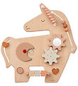 The Bright Starts toy is made of flexible and durable Oball technology, which is easy for baby to hold. The smiling face and colorful ears wrinkle when baby touches the monkey, while the small ribbons on the head provide fun sensory play. The monkey stands on a round base that has fun sounds, giggles and multicolored lights, while inside it has a ball and rattle beads that encourage baby to grab and shake it, and it helps develop the kid's motor skills. The toy also has a practical on and off button where it is also possible to adjust the sound level.