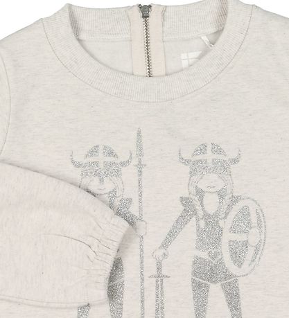 Sweet Danefæ dress in ivory melange with print of Freja in silver glitter.