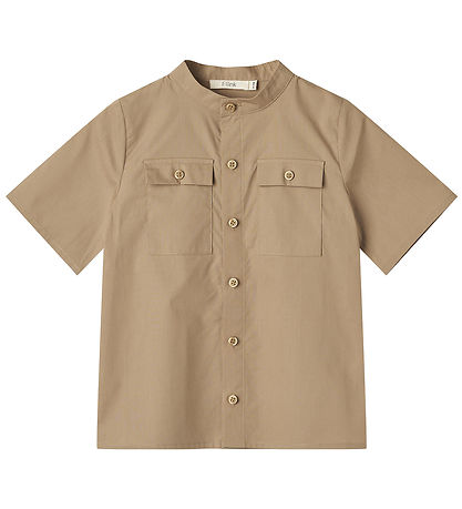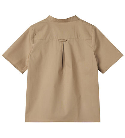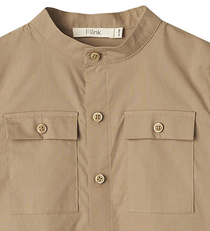 The Fliink Shirt has short sleeves and a fine Chinese collar. The skirt has two chest pockets with button closure, and the shirt closes with continuous buttons on the front. On the upper set of the back, the shirt has a seam from which decorative, vertical pleats emerge. The Shirt is in a light and tightly woven quality.
