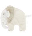 Nice Happy Horse comfort blanket shaped like the mammoth Milo in white plys with a mane of beige, faux fur.