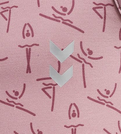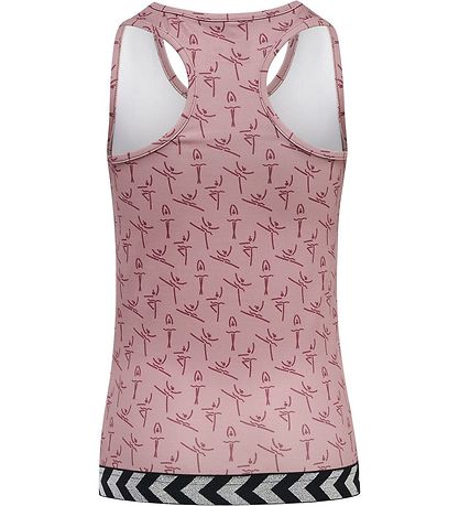 Beautiful Hummel tanktop in dark pink with an allover print of ballerina shoes in a darker shade. On the chest there is a silver print of two shevrons.