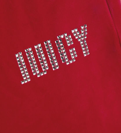 Fresh Juicy Couture velvet trousers in a vibrant red shade. The Trousers have a nice logo in the glittering rhinestone on the side, and they also have "Juicy" written on the back in the nice rhinestone.