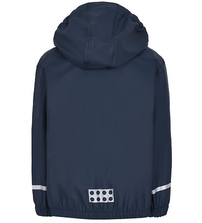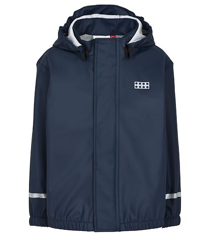 Smart LEGO® Wear rainwear in navy, consisting of a rain jacket and a pair of rain pants with suspenders.