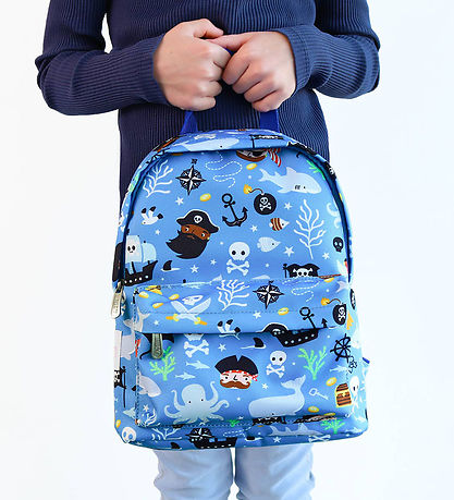 Cute A Little Lovely Company preschool backpack in blue with a cool pirate print.