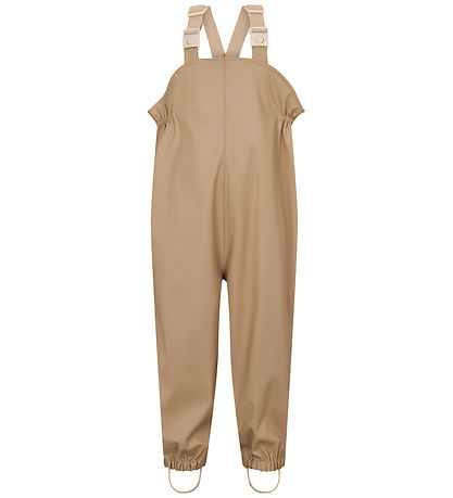 The Rain pants have adjustable elastic straps that can be opened at the front with snap fasteners. The sides have elastic edges, and the trouser legs have narrow elastic edges with adjustable, removable rubber straps to put under the boots.