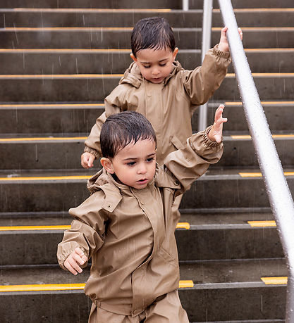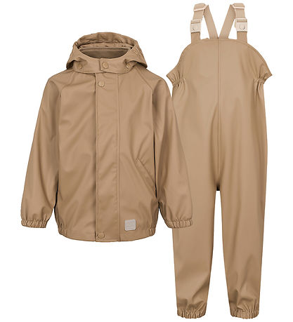Lovely MarMar rainwear in plain brown PU, and it consists of a rain jacket and a pair of rain pants with suspenders.