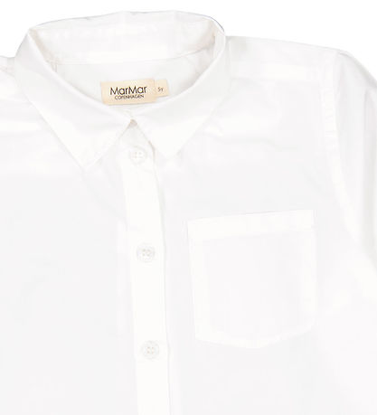 The MarMar shirt can be opened at the front with continuous, transparent buttons. The Shirt has a classic collar and long sleeves that can be opened with two buttons on the back. At the waist, it has a round shape.