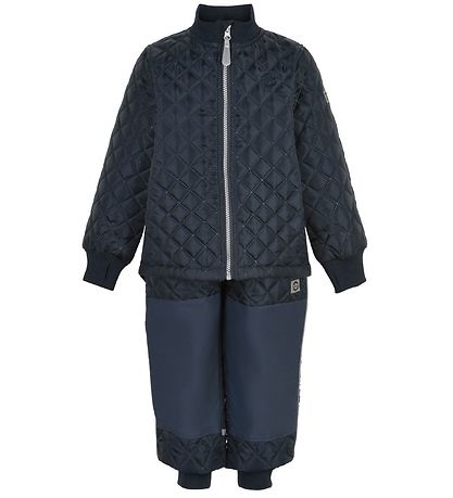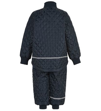 Beautiful Mikk-Line thermo set consisting of a thermo jacket and a pair of thermo trousers in navy with a quilted structure.