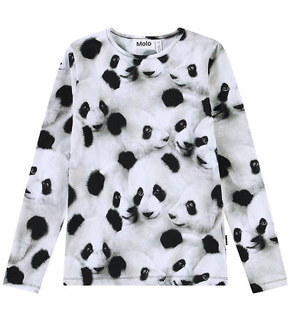 Charming Molo blouse with long sleeves and a detailed all-over print of panda faces, giving a vibrant and unique look. The round neckline contributes to the simple design, which makes the Molo blouse versatile in use.