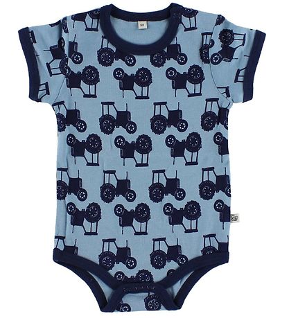 - Light blue with an allover print of navy tractors.