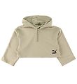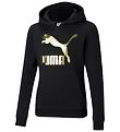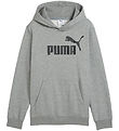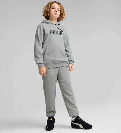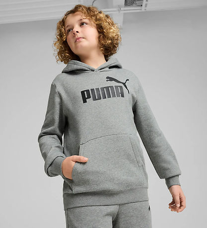 Beautiful Puma hoodie in grey melange sweat, and on the front there is a large, black logo print.