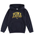 The Puma hoodie has a Fast hood with a cotton lining, long sleeves and wide ribbed edges. There is a large kangaroo pocket on the front and the hoodie has soft, brushed cotton on the inside.