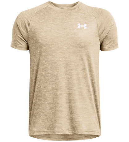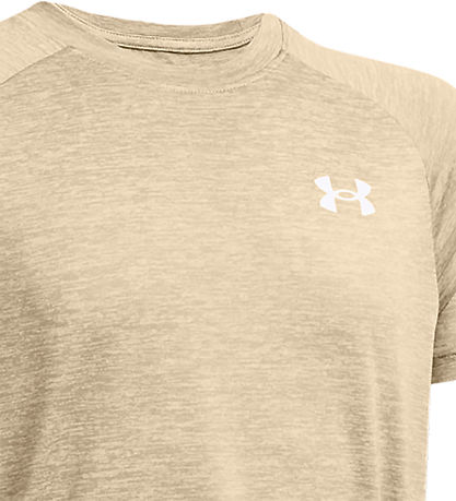 Nice Under Armour t-shirt in melange beige with a greenish tinge, and a little, white logo is printed on the right side.