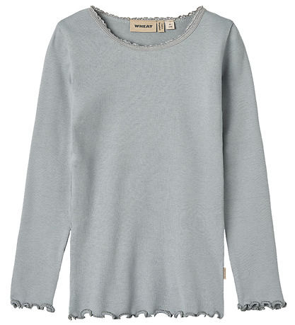Delicious Wheat blouse with long sleeves in a nice light blue shade with a beautiful ribbed structure. The Blouse has a nice slightly wavy edge at the bottom and at the sleeves, which adds a sweet touch to the design.