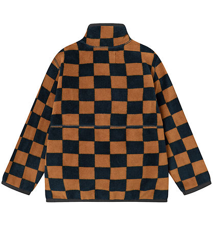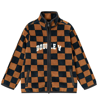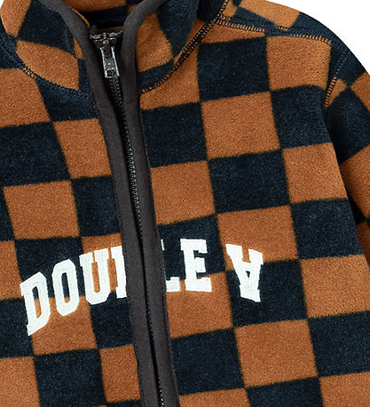 Smart Wood Wood fleece jacket in a nice pattern of brown and navy blue checs. In front, there is embroidered "Double A" in white.