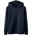 Nice CP Company hoodie in plain black. At the top of the left sleeve there is a black plastic logo.
