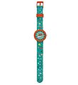 Beautiful Djeco wristwatch in shades of green and black with circles and numbers on the dial.