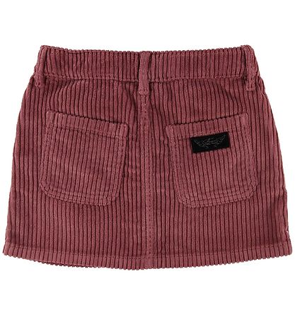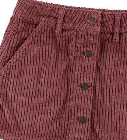 Beautiful Finger In The Nose skirt in dark rose in a strong corduroy quality in a stretchable quality fabric and with gold-coloured buttons.