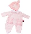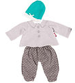 The Götz cardigan has practical buttons at the front and ribbed edges in all openings. The Beanie has a stitching cross on the head.