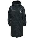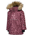 The Hummel winter coat is a long model that goes down over the thighs. The winter coat has a removable hood, which is attached around the fleece-lined collar with velcro and press studs. The hood has an elastic edge edge in the face opening. The sleeves have practical elastic edges.