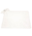 Cozy Jellycat cuddly blanket in beige with floral details, and in one corner sits a little soft toy shaped like a rabbit with long, flowery ears.