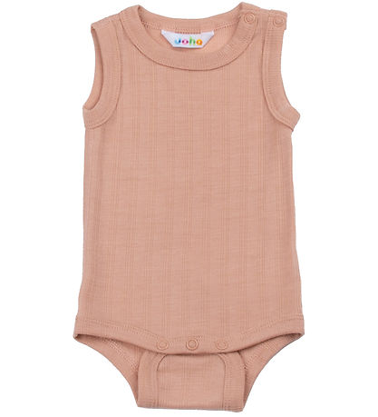 Comfortable Joha bodysuit without sleeves in a beautiful, light rose colour with a ribbed pattern that gives a soft and classic look.