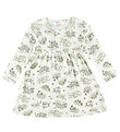 The Joha dress has long sleeves and a round neckline, where it can be opens on the left side with practical push buttons. The Dress has a good width and in all openings there are narrow ribbed edges. The Dress is in a nice cotton quality.