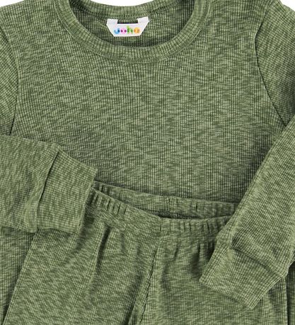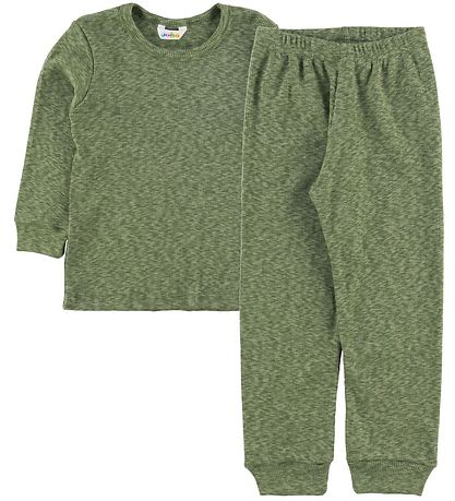 Lovely Joha pyjama set consisting of a pair of night pants and a long-sleeved blouse in green melange.